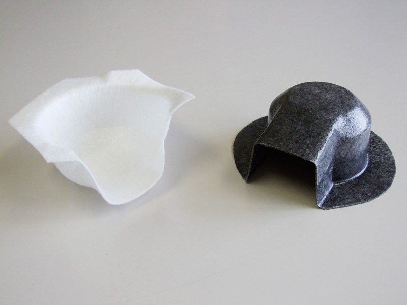 業界初の不織布成形製品です。当社独自の技術によりご希望の形状へ加工いたします。