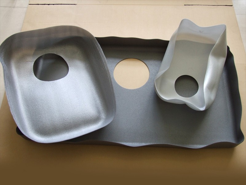 薄く柔らかいPE発泡体を成形し、シンク(流し台)を包み込むことのできる形状へ加工しました。