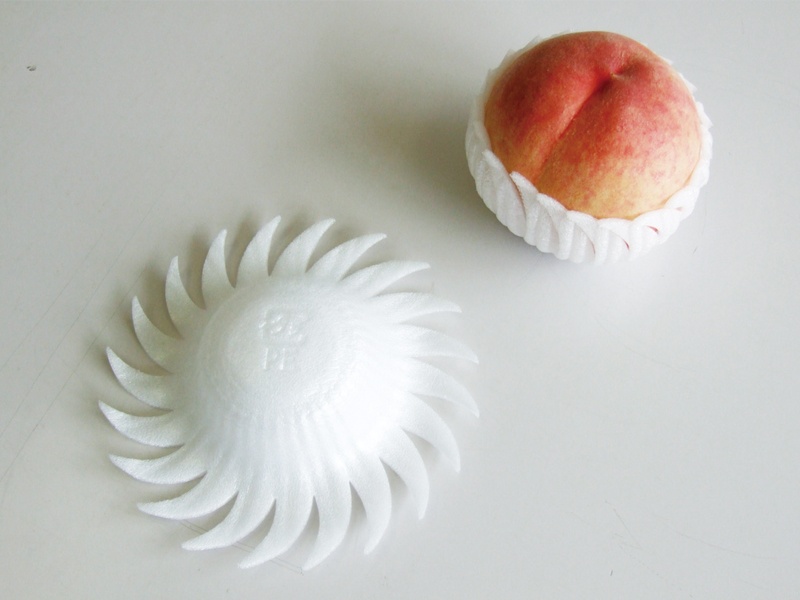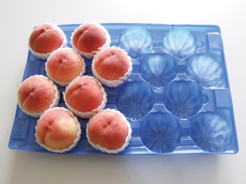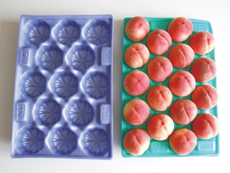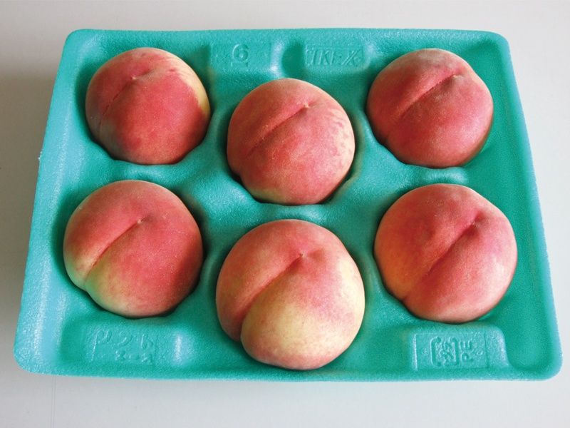柔軟かつ弾力のある発泡ポリエチレンシートを当社独自の真空成形技術により加工しました。「長距離輸送でも果実を痛めることが少ない。」と生産者の方々にご支持いただいており、桃の産地で一番使用されている果実用パックです。不定形な果実にも優しくフィットし、玉廻りも少ないので保護性抜群です。