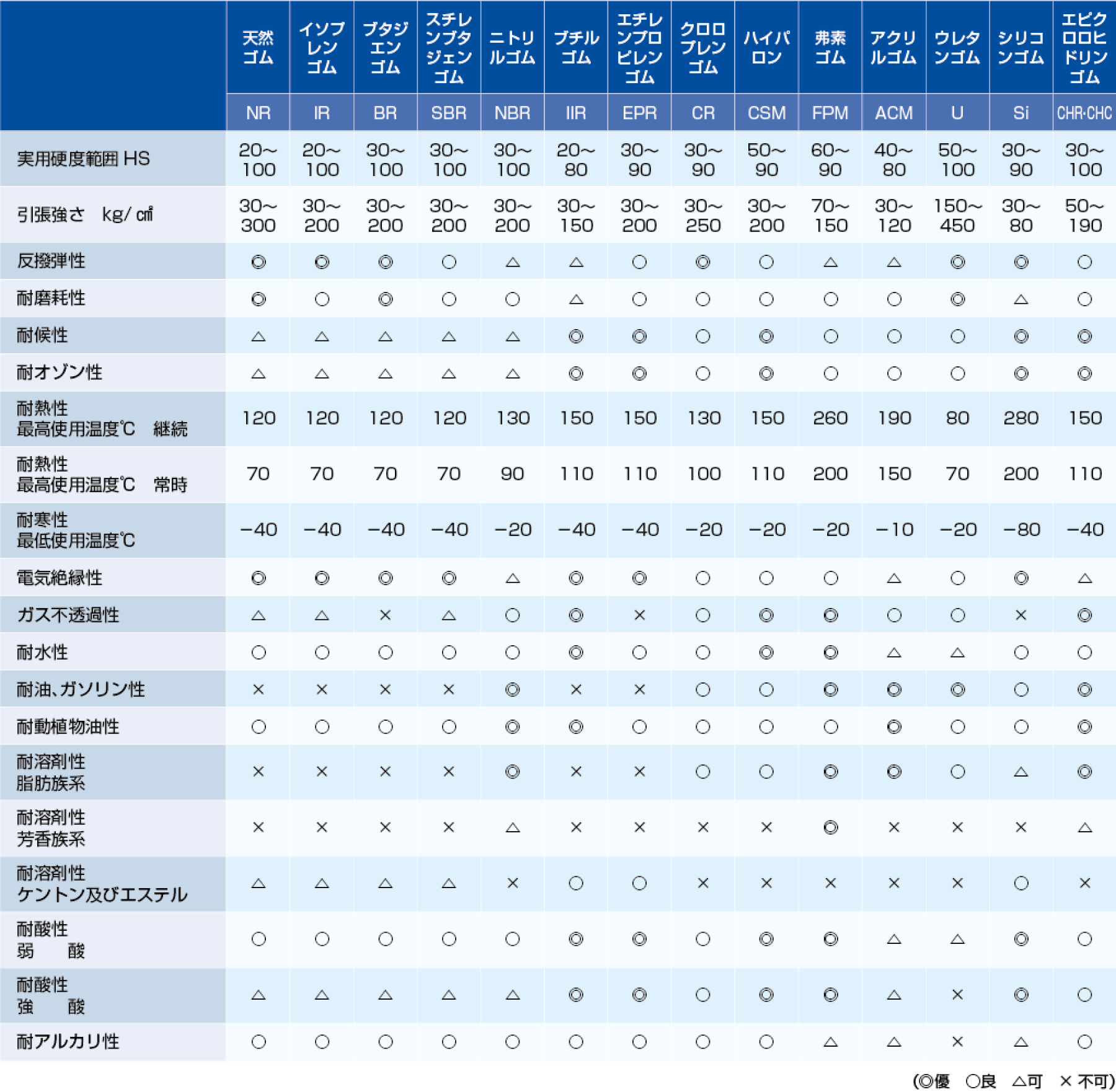 対応材料 | シリコンゴム、フッ素ゴム、各種合成ゴム |